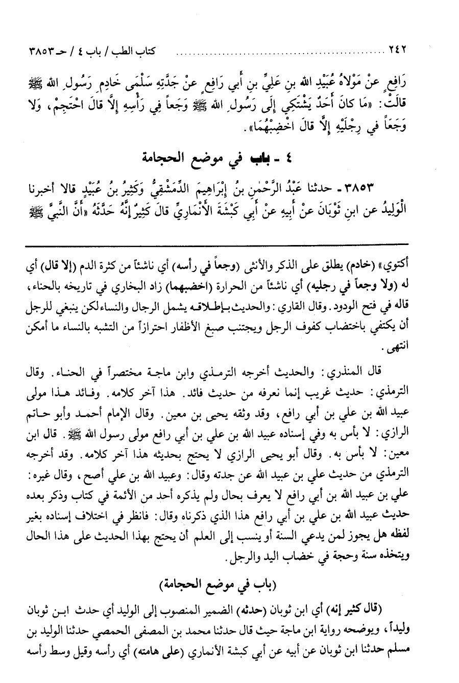 ([3859] بَاب فِي مَوْضِعِ الْحِجَامَةِ)