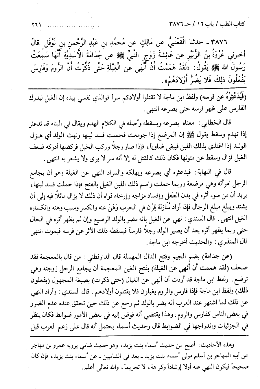 [3882] (عَنْ جُدَامَةَ) بِضَمِّ الْجِيمِ وَفَتْحِ الدَّالِ الْمُهْمَلَةِ قَالَ الدَّارَقُطْنِيُّ مَنْ قَالَ بِالْمُعْجَمَةِ فَقَدْ صَحَّفَ (لَقَدْ هَمَمْتُ أَنْ أَنْهَى عَنِ الْغَيْلَةِ) بِفَتْحِ الْغَيْنِ الْمُعْجَمَةِ أَنْ يُجَامِعَ الرَّجُلُ زَوْجَتَهُ وهي ترضع
