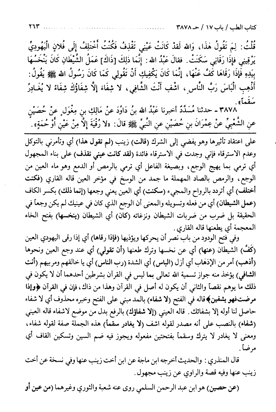 [3884] (عن حصين) هو بن عَبْدِ الرَّحْمَنِ السُّلَمِيُّ رَوَى عَنْهُ شُعْبَةُ وَالثَّوْرِيُّ وَغَيْرُهُمَا (مِنْ عَيْنٍ أَوْ