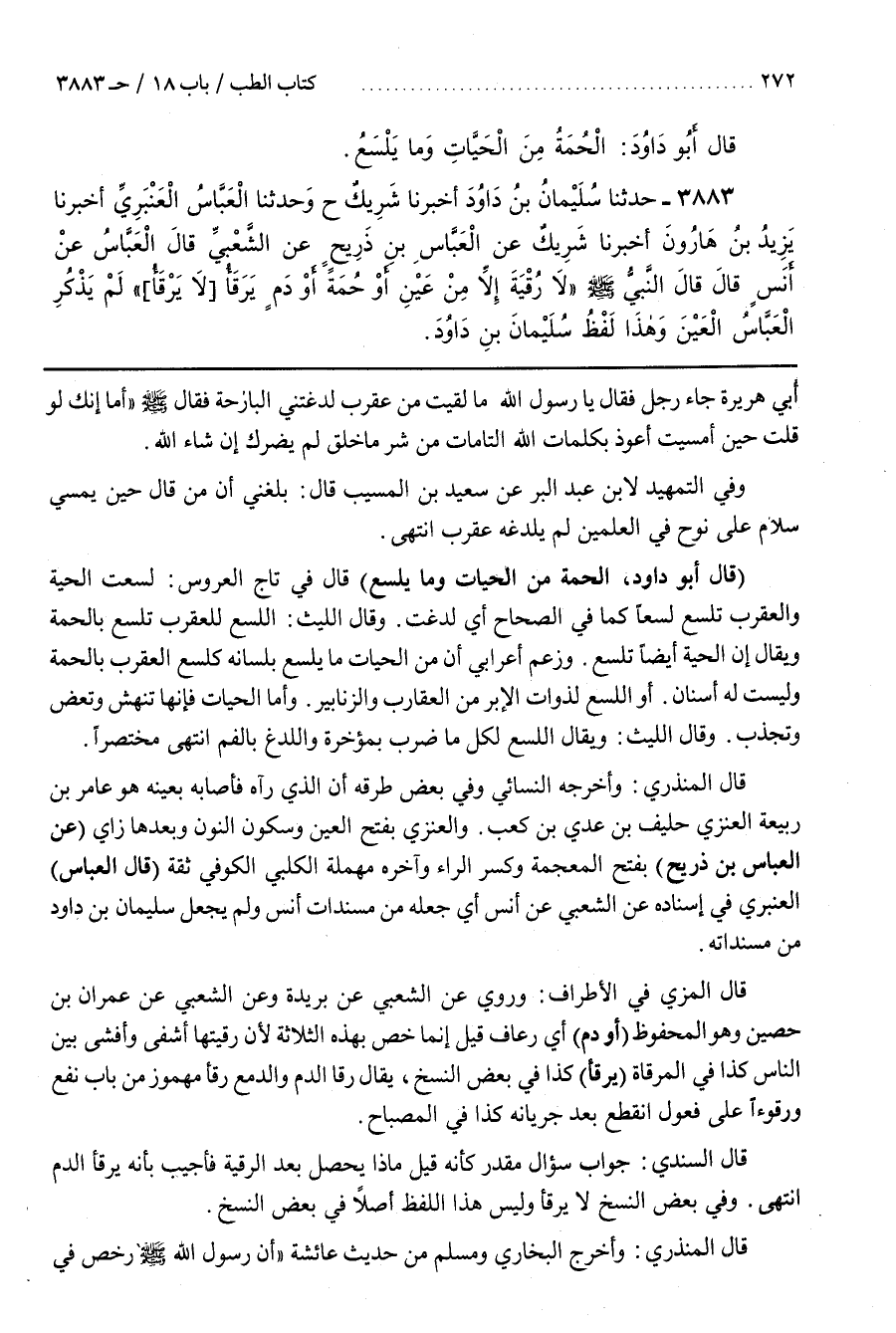 (قَالَ أَبُو دَاوُدَ الْحُمَةُ مِنَ الْحَيَّاتِ وَمَا يَلْسَعُ) قَالَ فِي تَاجِ الْعَرُوسِ لَسَعَتِ الْحَيَّةُ وَالْعَقْرَبُ تَلْسَعُ لَسْعًا كَمَا فِي الصِّحَاحِ أَيْ لَدَغَتْ