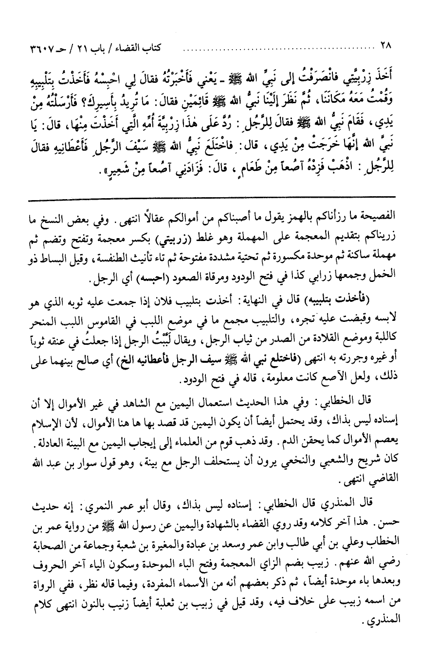 زُبَيْبٌ بِضَمِّ الزَّايِ الْمُعْجَمَةِ وَفَتْحِ الْبَاءِ الْمُوَحَّدَةِ وَسُكُونِ الْيَاءِ آخِرُ الْحُرُوفِ وَبَعْدَهَا بَاءٌ مُوَحَّدَةٌ أَيْضًا ثُمَّ ذَكَرَ بَعْضُهُمْ أَنَّهُ مِنَ الْأَسْمَاءِ الْمُفْرَدَةِ وَفِيمَا قَالَهُ نَظَرٌ فَفِي الرُّوَاةِ مَنِ اسْمُهُ زُبَيْبٌ عَلَى خِلَافٍ فِيهِ وَقَدْ قِيلَ فِي زُبَيْبِ بْنِ ثَعْلَبَةَ أَيْضًا زُنَيْبٌ بِالنُّونِ انْتَهَى كلام المنذري