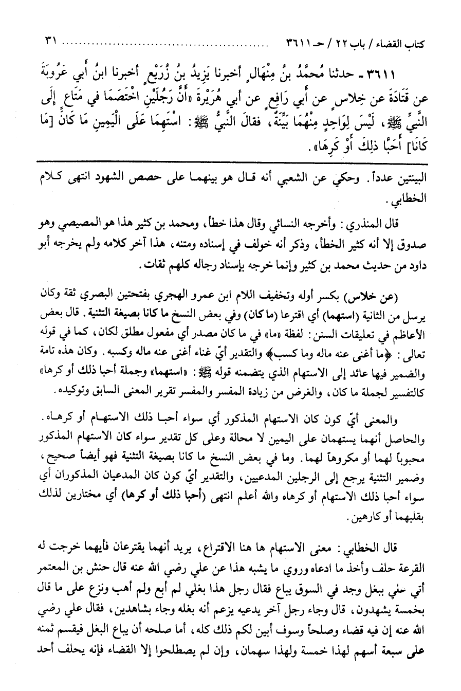 () [3616] (عَنْ خِلَاسٍ) بِكَسْرِ أوله وتخفيف اللام بن عَمْرٍو الْهَجَرِيِّ بِفَتْحَتَيْنِ الْبَصْرِيِّ ثِقَةٌ وَكَانَ يُرْسِلُ مِنَ الثَّانِيَةِ (اسْتَهِمَا) أَيِ اقْتَرِعَا (مَا كَانَ) وَفِي بَعْضِ النُّسَخِ مَا كَانَا بِصِيغَةِ التَّثْنِيَةِ