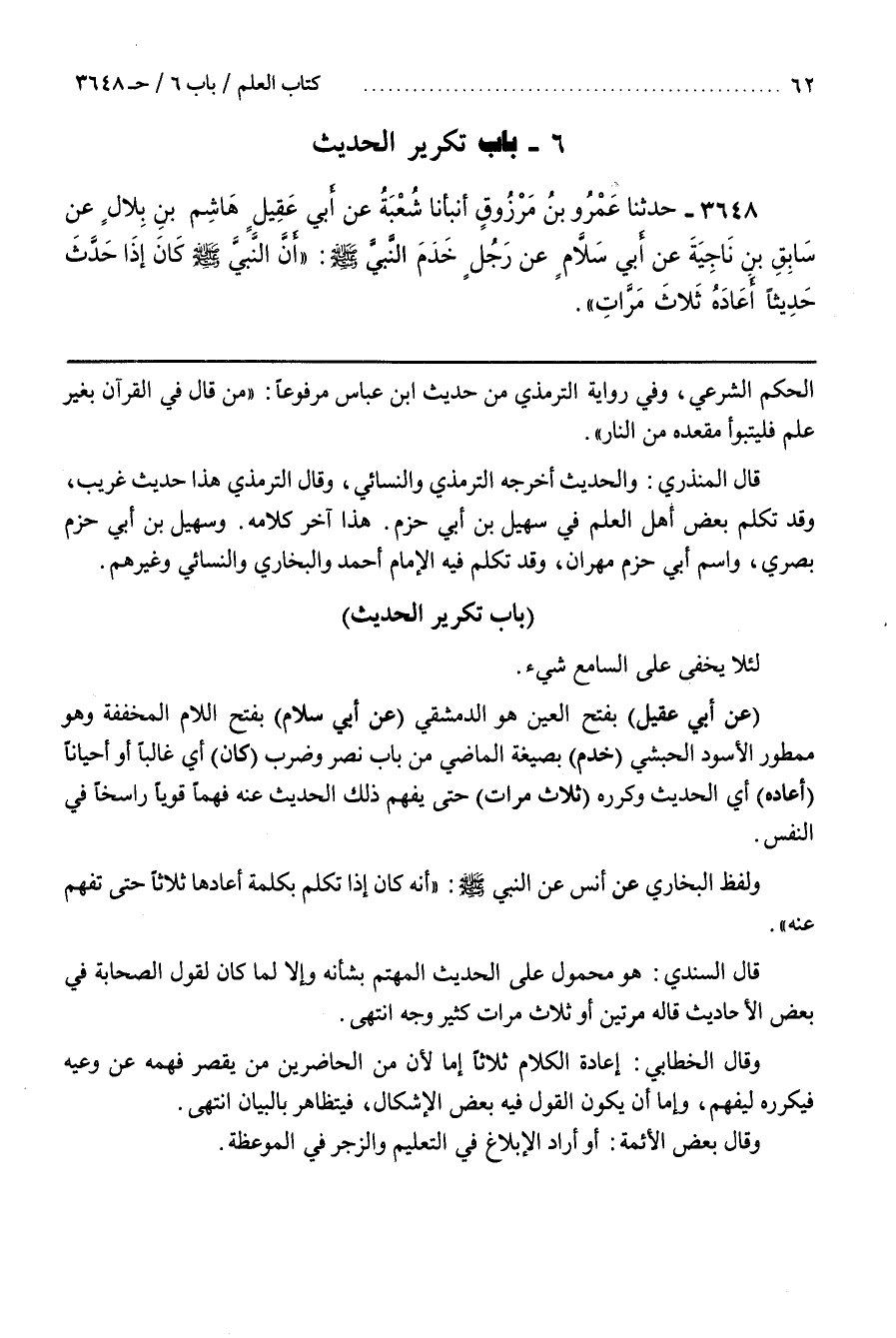 ([3653] بَاب تَكْرِيرِ الْحَدِيثِ)