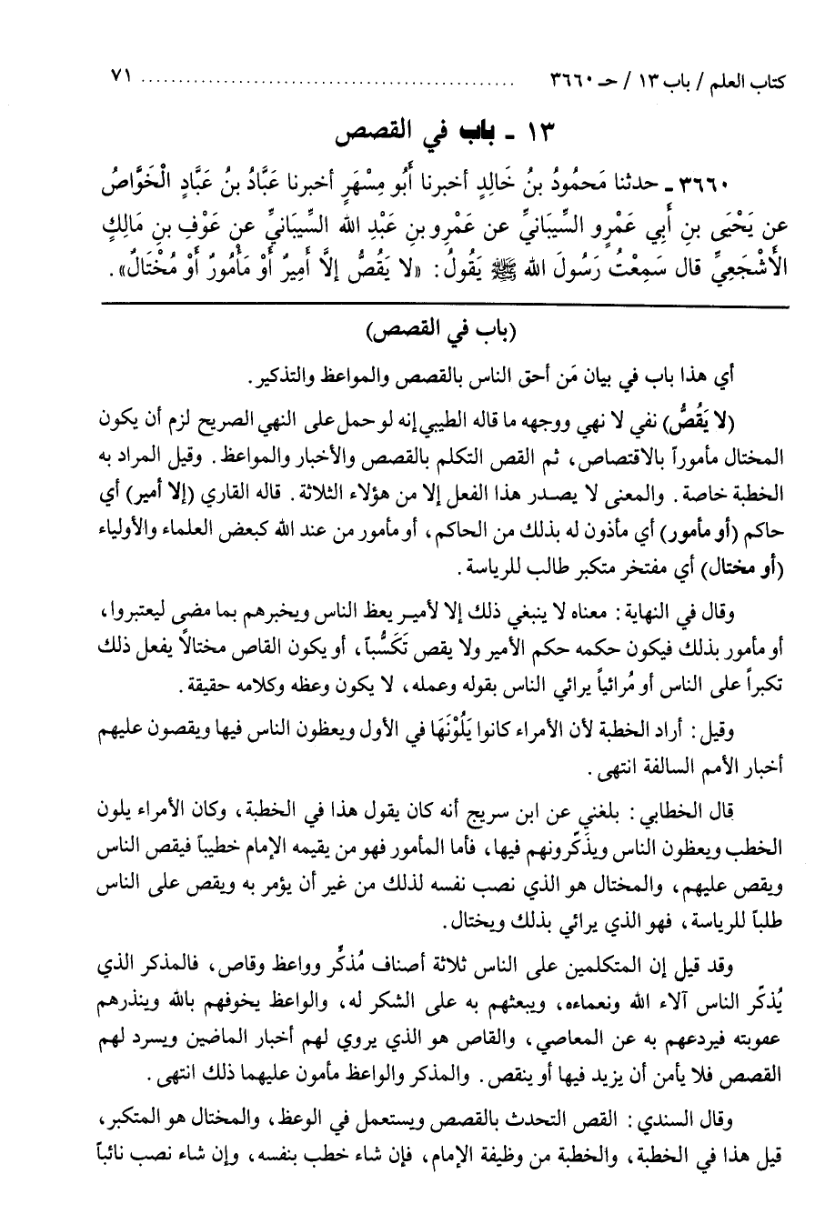 [3665] أَيْ هَذَا بَابٌ فِي بَيَانِ مَنْ أَحَقُّ مِنَ النَّاسِ بِالْقَصَصِ وَالْمَوَاعِظِ وَالتَّذْكِيرِ