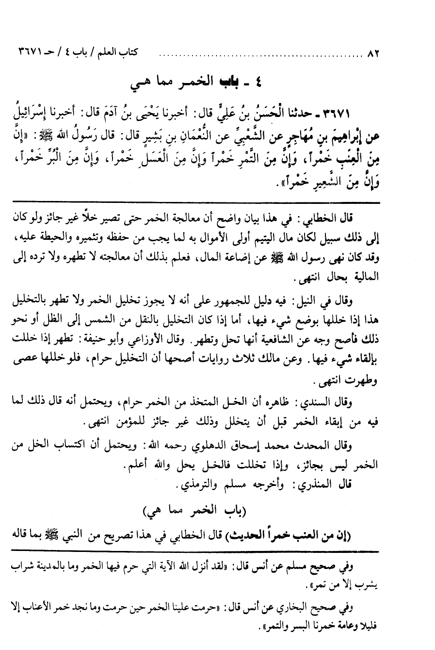 [3676] (إِنَّ مِنَ الْعِنَبِ خَمْرًا الْحَدِيثَ) قَالَ الْخَطَّابِيُّ فِي هَذَا تَصْرِيحٌ مِنَ النَّبِيِّ صَلَّى اللَّهُ عَلَيْهِ وَسَلَّمَ بِمَا قَالَهُ