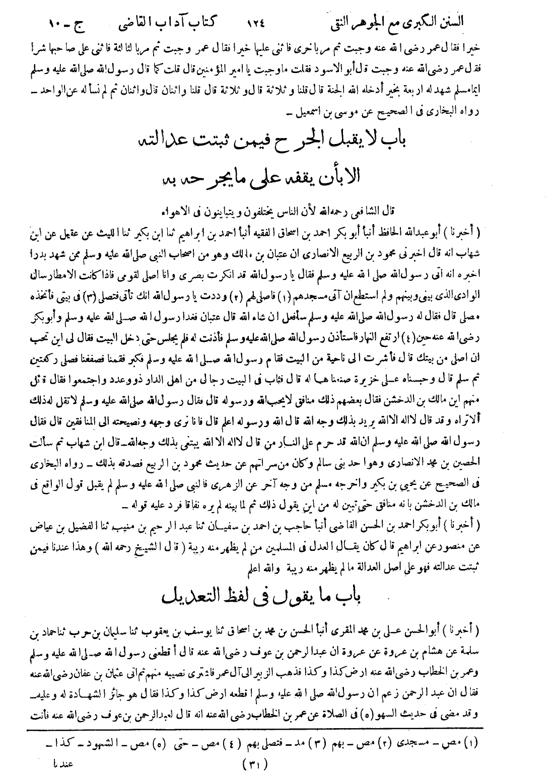 (أخبرنا) أبو الحسن على بن محمد المقرى أنبأ الحسن بن محمد بن اسحاق ثنا يوسف بن يعقوب ثنا سليمان بن حرب ثنا حماد بن سلمة عن هشام بن عروة عن عروة ان عبد الرحمن بن عوف رضى الله عنه قال أقطعنى رسول الله صلى الله عليه وسلم وعمر بن الخطاب رضى الله عنه ارض كذا وكذا فذهب الزبير إلى آل عمر فاشترى نصيبه منهم ثم اتى عثمان بن عفان رضى الله عنه فقال ان عبد الرحمن زعم ان رسول الله صلى الله عليه وسلم اقطعه ارض كذا وكذا فقال هو جائز الشهادة له وعليه - وقد مضى في حديث السهو (5) في الصلاة عن عمر بن الخطاب رضى الله عنه انه قال لعبد الرحمن بن عوف رضى الله عنه فأنت