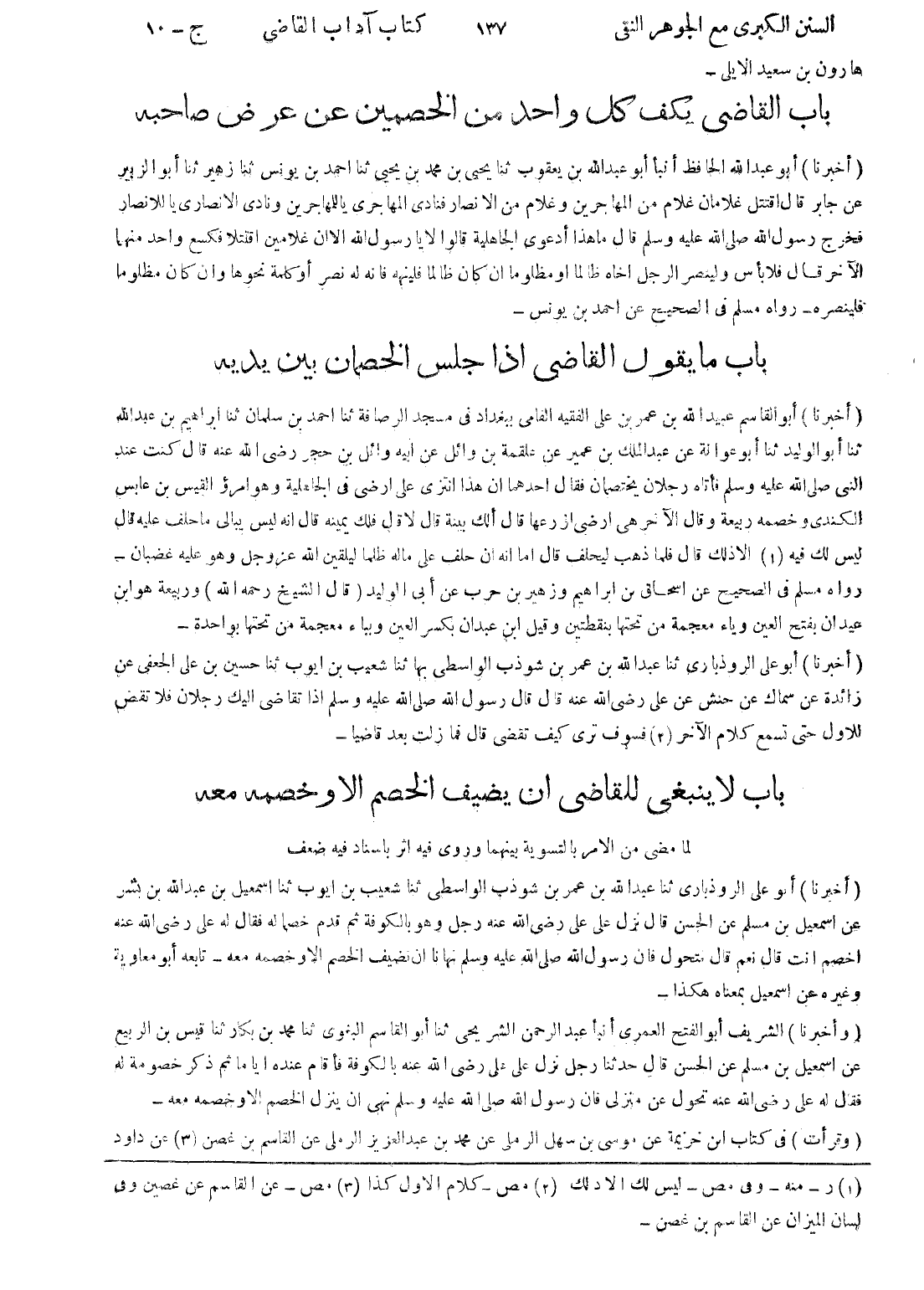 هارون بن سعيد الايلى باب القاضى يكف كل واحد من الخصمين عن عرض صاحبه