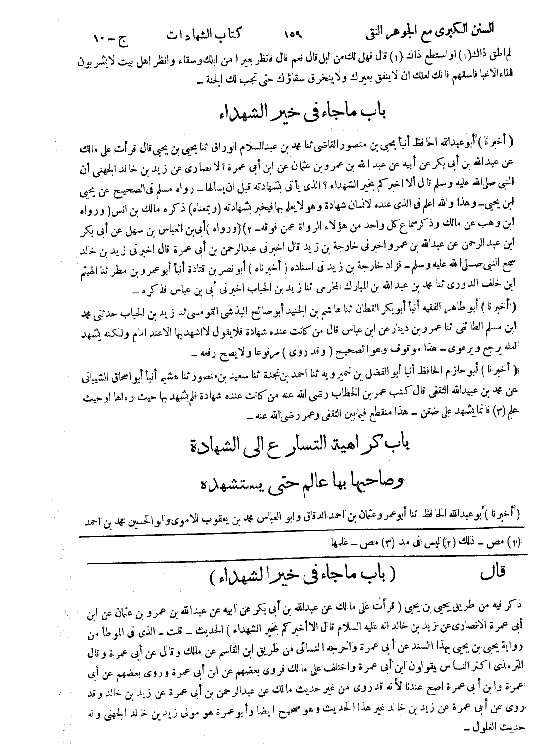 قال (باب ما جاء في خير الشهداء) ذكر فيه من طريق يحيى بن يحيى (قرأت على مالك عن عبد الله بن أبى بكر عن ابيه عن عبد الله بن عمرو بن عثمان عن ابن أبى عمرة الانصاري عن زيد بن خالد انه عليه السلام قال الا أخبركم بخير الشهداء) الحديث - قلت - الذى في الموطأ من رواية يحيى بن يحيى بهذا السند عن أبى عمرة واخرجه النسائي من طريق ابن القاسم عن مالك وقال عن أبى عمرة وقال الترمذي اكثر الناس يقولون ابن أبى عمرة واختلف على مالك فروى بعضهم عن ابن أبى عمرة وروى بعضهم عن أبى عمرة وابن أبى عمرة اصح عندنا لانه قد روى من غير حديث مالك عن عبد الرحمن بن أبى عمرة عن زيد بن خالد وقد روى عن أبى عمرة عن زيد بن خالد غير هذا الحديث وهو صحيح ايضا وأبو عمرة هو مولى زيد بن خالد الجهنى وله حديث الغلول -