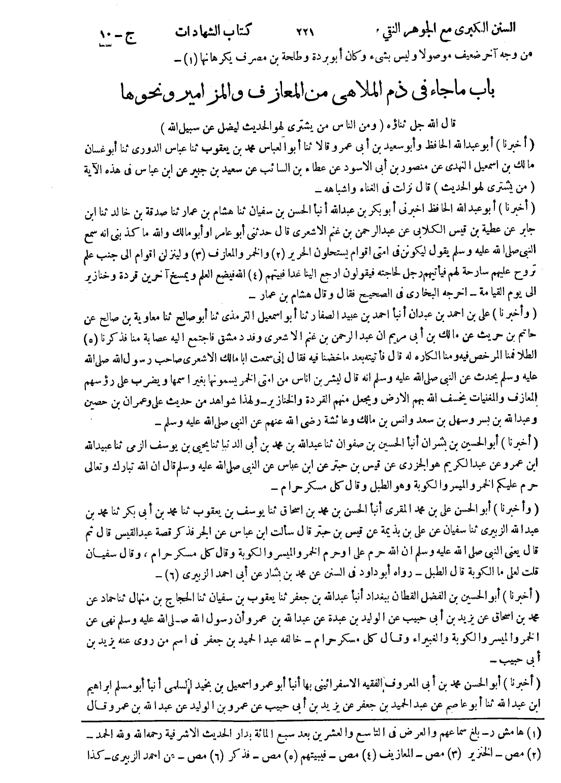 (1) هامش ر - بلغ سماعهم والعرض في التاسع والعشرين بعد سبع المائة بدار الحديث الاشرفية رحمه الله ولله الحمد - (2) مص - الخنزير (3) مص - المعازيف (4) مص - فيبيتهم (5) مص - فذكر (6) مص - عن احمد الزبيري - كذا (*)
