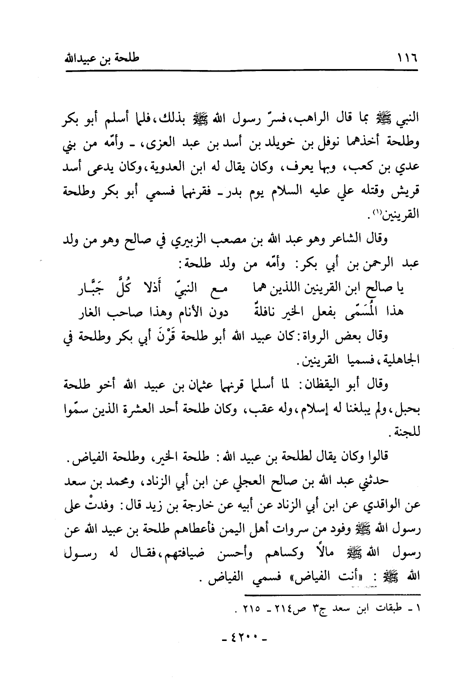 قَالُوا وَكَانَ يقال لطلحة بْن عُبَيْد اللَّهِ: طَلْحَة الخير، وطلحة الفياض.