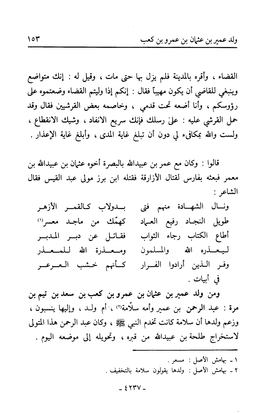 ومن ولد عمير بْن عُثْمَان بْن عَمْرو بْن كعب بْن سَعْد بْن تيم بْن مرة: