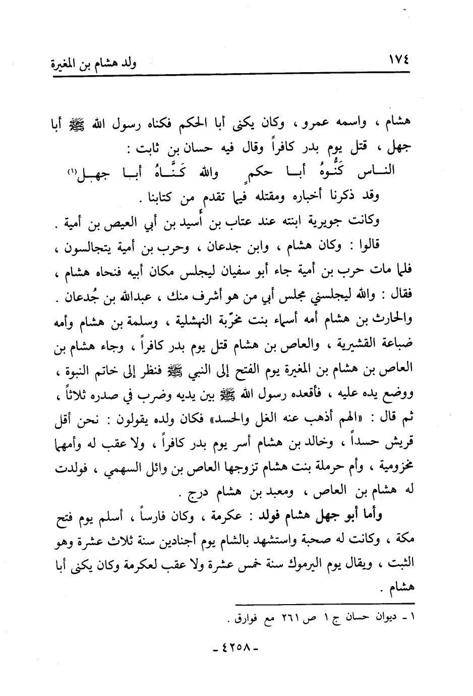 هِشَام، واسمه عَمْرو، وَكَانَ يكنى أبا الحكم فكناه رَسُولُ اللَّهِ صَلَّى اللَّهُ عَلَيْهِ وَسَلَّمَ أَبَا جهل، قتل يَوْم بدر كافرا وَقَالَ فِيهِ حسان بْن ثَابِت: