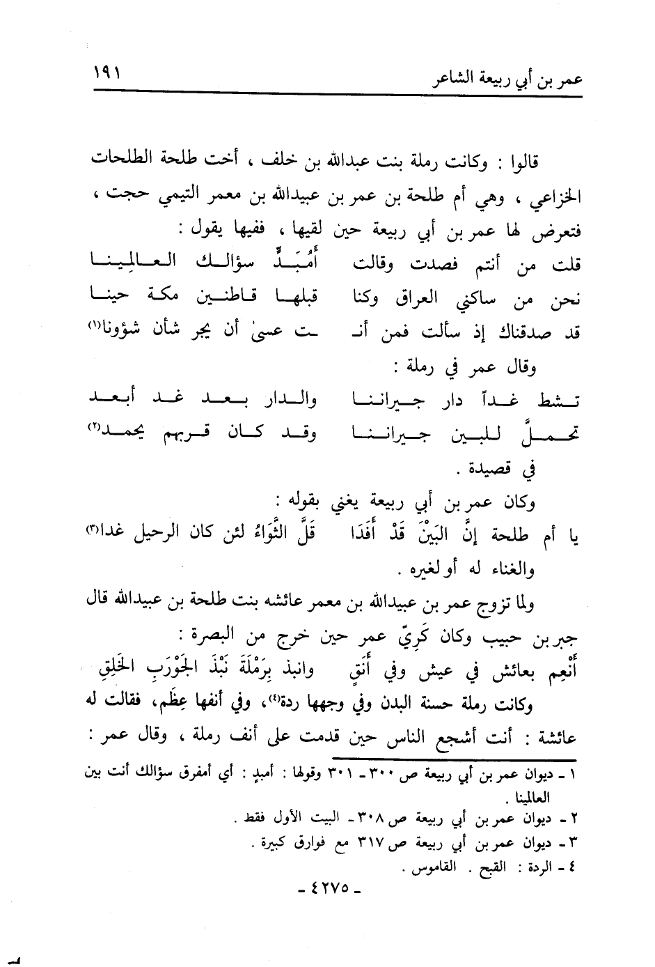 وَكَانَ عمر بْن أَبِي رَبِيعَةَ يغني بقوله:
