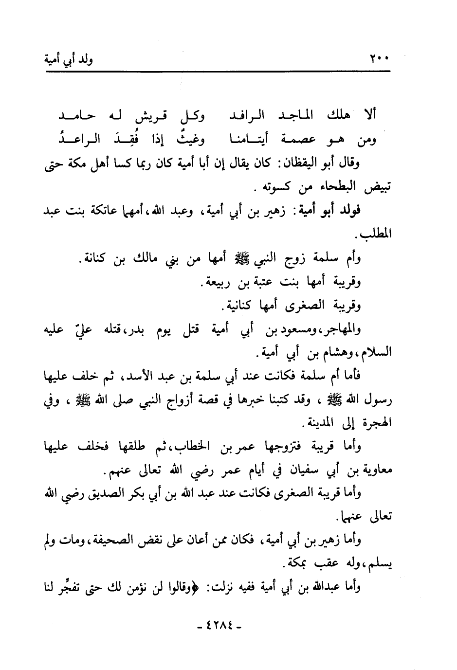 والمهاجر، ومسعود بْن أَبِي أمية قتل يَوْم بدر، قتله علي عَلَيْهِ السلام، وهشام بْن أَبِي أمية.