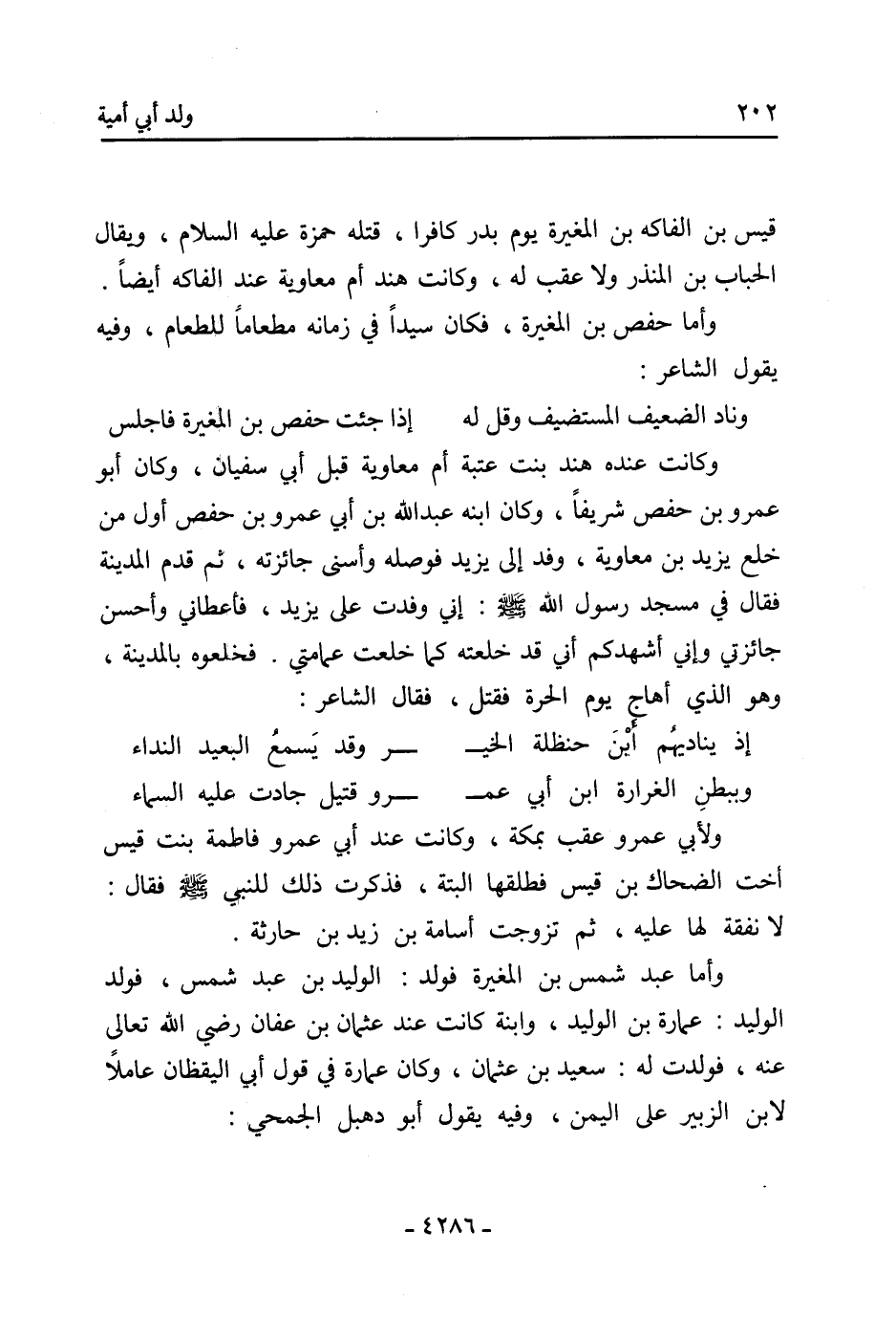 قيس بن الفاكه بْن الْمُغِيرَةِ يَوْم بدر كافرا، قتله حمزة عَلَيْهِ السلام، ويقال الحباب بْن المنذر وَلا عقب لَهُ، وكانت هند أم مُعَاوِيَة عند الفاكه أَيْضًا.