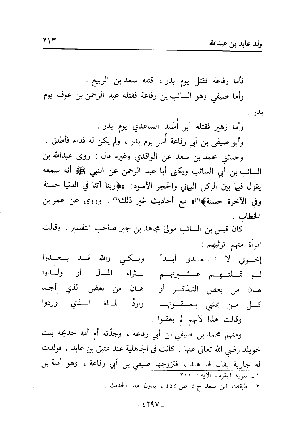 [2] طبقات ابن سعد ج 5 ص 445، بدون هذا الحديث.