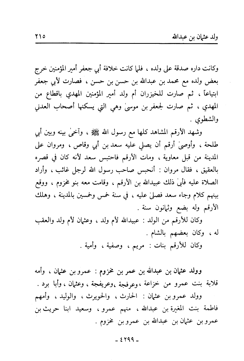 وَكَانَ للأرقم من الولد: عُبَيْد اللَّهِ لأم ولد، وعثمان لأم ولد والعقب لَهُ، وَكَانَ بعضهم بالشام.
