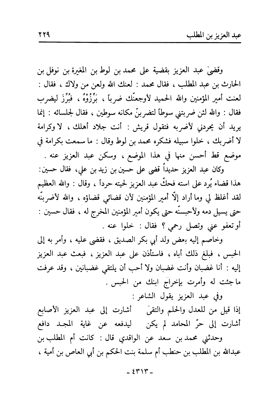 وَكَانَ عَبْد الْعَزِيزِ حديدا قضى عَلَى حسين بْن زَيْد بْن علي، فَقَالَ حسين:
