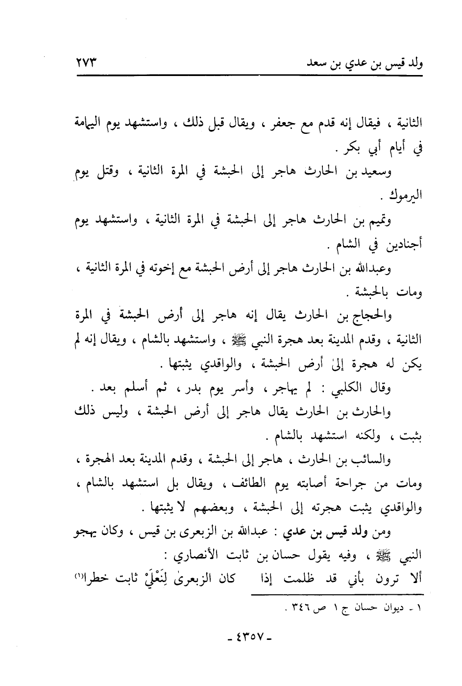 وسعيد بْن الْحَارِث هاجر إِلَى الحبشة فِي المرة الثانية، وقتل يَوْم اليرموك.