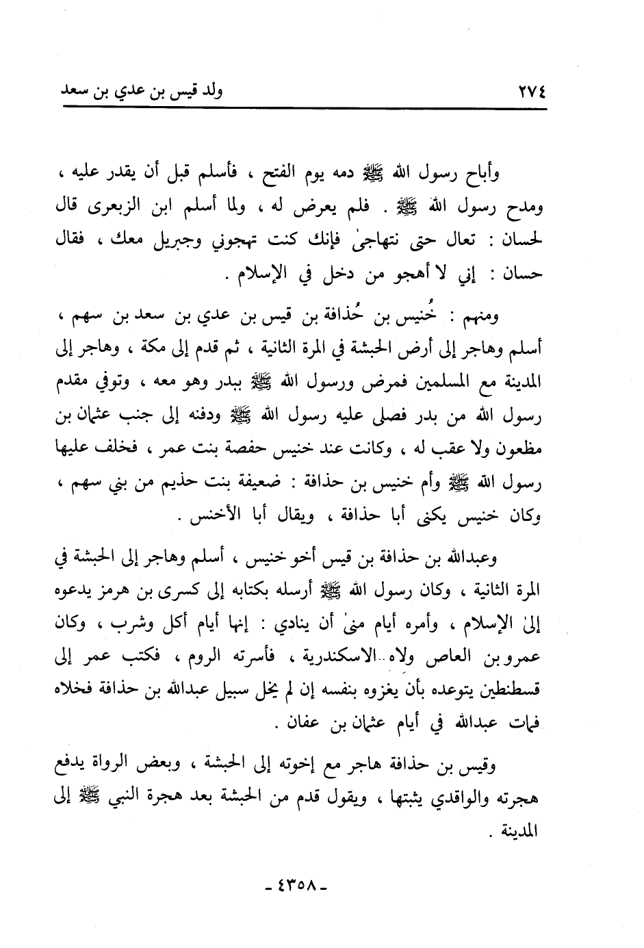 ومنهم: خنيس بْن حذافة بْن قَيْس بْن عدي بْن سَعْد بْن سهم،