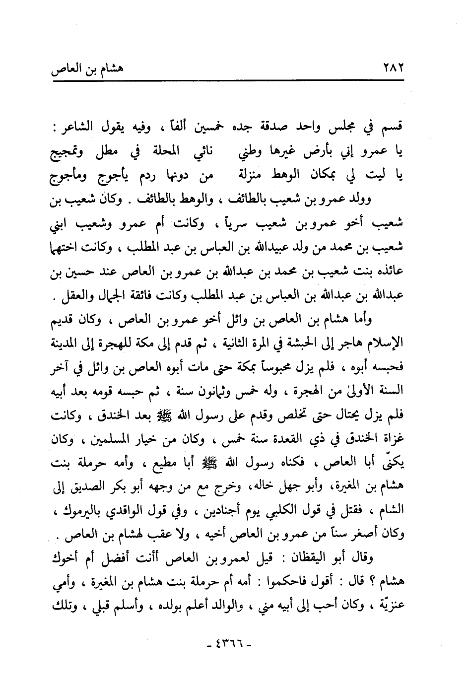وأما هِشَام بْن العاص بْن وائل أخو عَمْرو بْن الْعَاصِ،