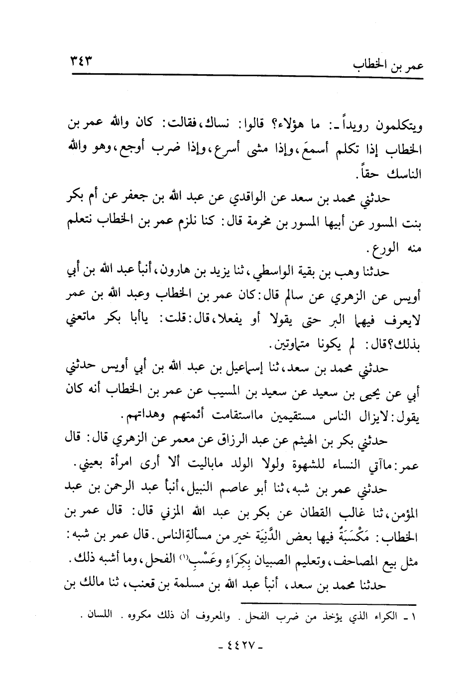 حَدَّثَنِي عُمَرُ بْنُ شَبَّةَ، ثنا أَبُو عَاصِمٍ النَّبِيلُ، أنبأ عَبْدُ الرَّحْمَنِ بْنُ عَبْدِ الْمُؤْمِنِ، ثنا غَالِبٌ القطان عَنْ بَكْرِ بْنِ عَبْدِ اللَّهِ الْمُزَنِيِّ قَالَ: قَالَ عُمَرُ بْنُ الْخَطَّابِ: مَكْسَبَةٌ فِيهَا بَعْضُ الدَّنِيَّةِ خَيْرٌ مِنْ مَسْأَلَةِ النَّاسِ. قَالَ عُمَرُ بْنُ شَبَّةَ: