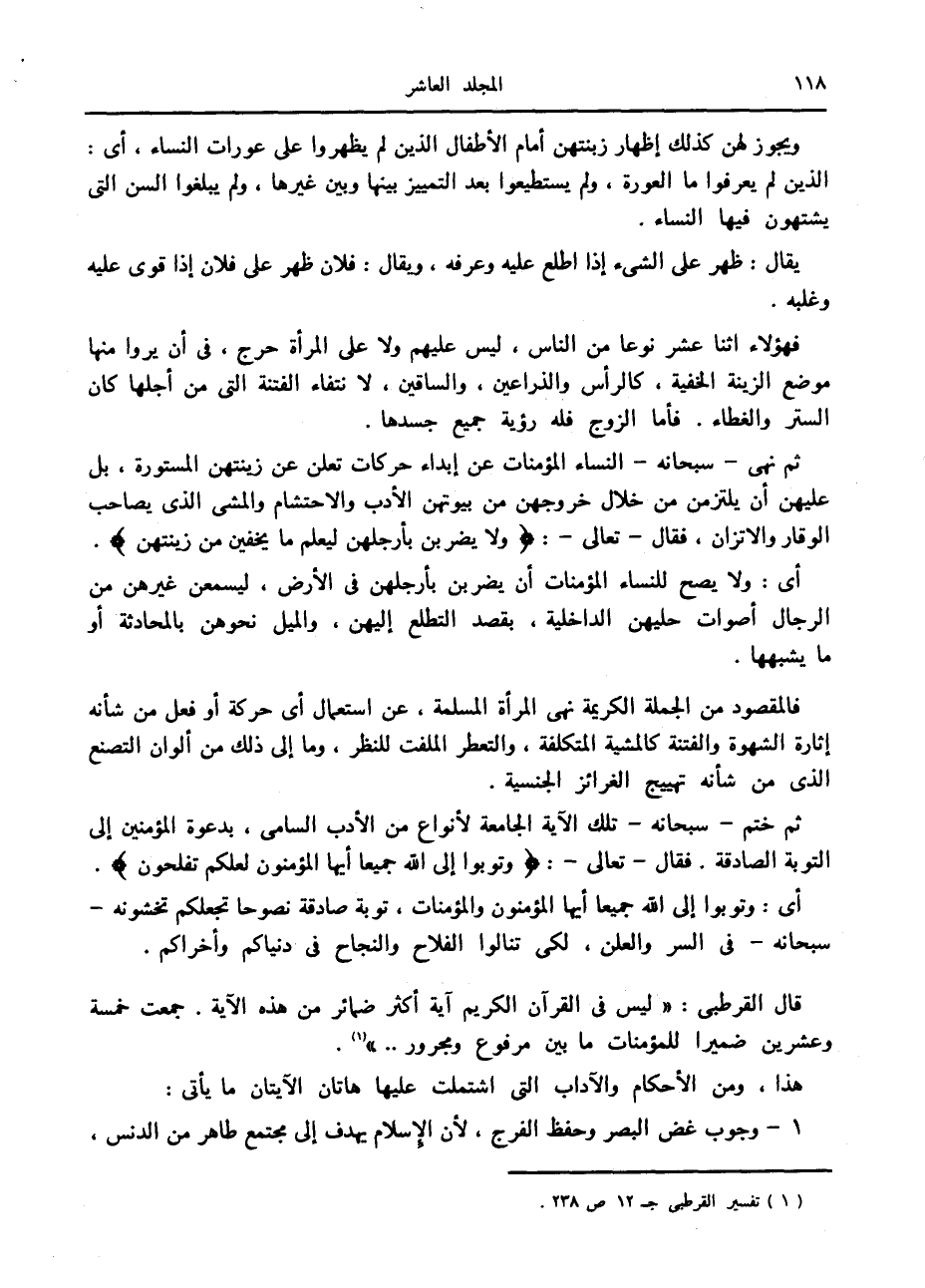قال القرطبي: «ليس في القرآن الكريم آية أكثر ضمائر من هذه الآية. جمعت خمسة وعشرين ضميرا للمؤمنات ما بين مرفوع ومجرور..» «1» .