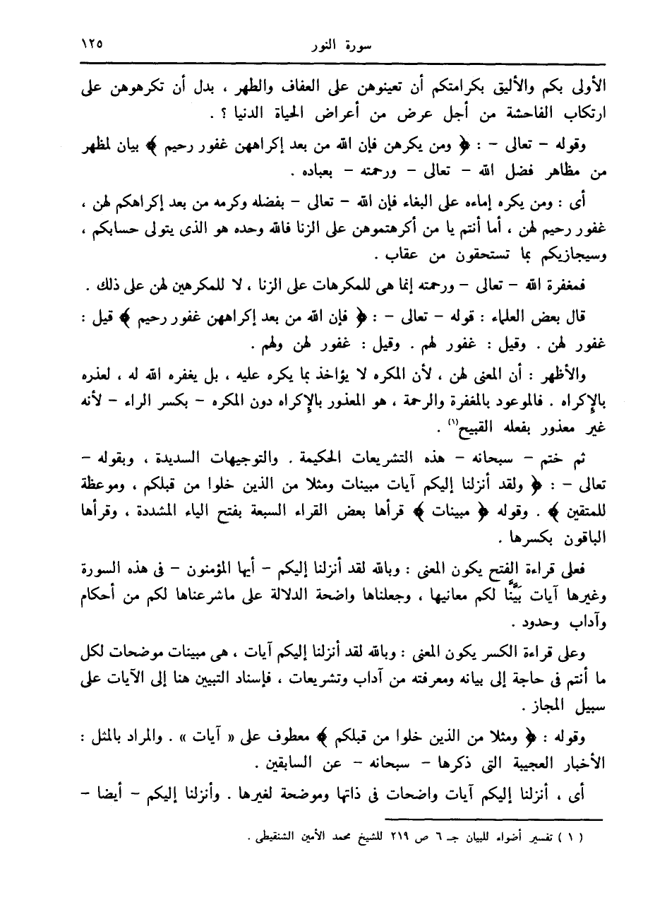 (1) تفسير أضواء للبيان ج 6 ص 219 للشيخ محمد الأمين الشنقيطى.