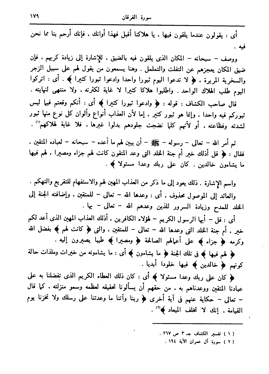 (1) تفسير الكشاف ج 3 ص 267.