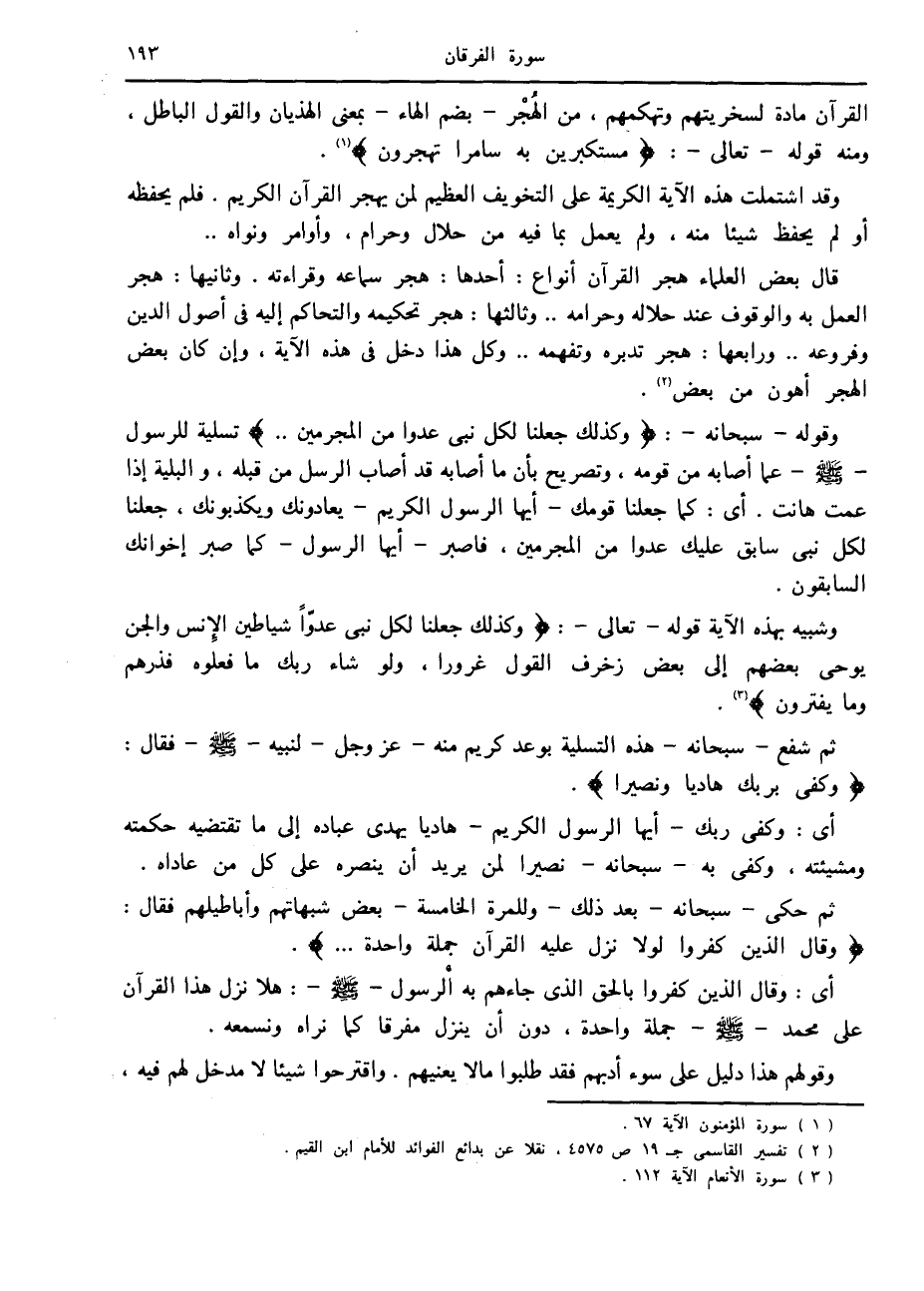 (2) تفسير القاسمى ج 19 ص 4575، نقلا عن بدائع الفوائد للإمام ابن القيم.
