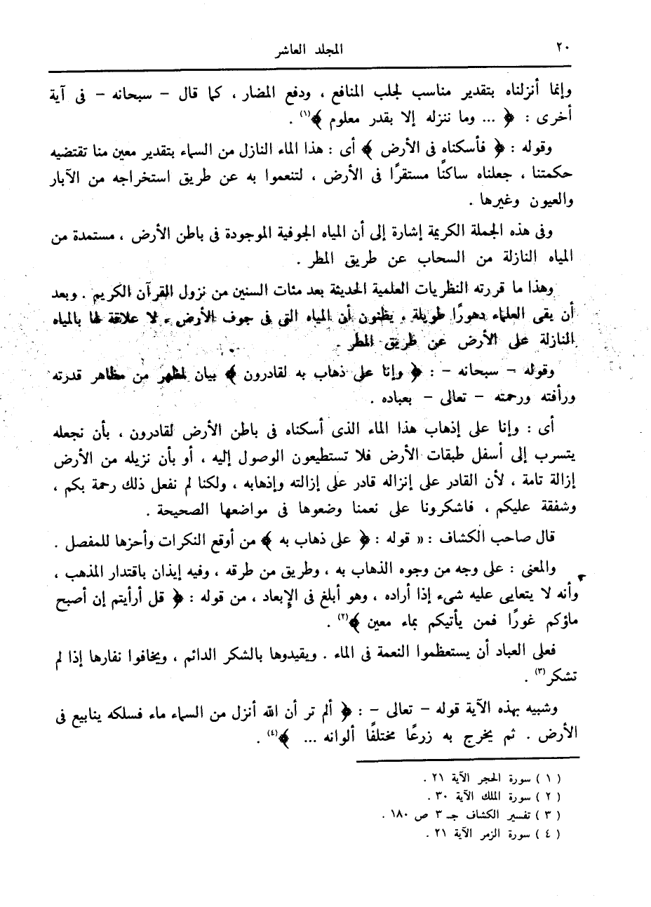وهذا ما قررته النظريات العلمية الحديثة بعد مئات السنين من نزول القرآن الكريم. وبعد أن بقي العلماء دهورا طويلة، يظنون أن المياه التي في جوف الأرض، لا علاقة لها بالمياه النازلة على الأرض عن طريق المطر.