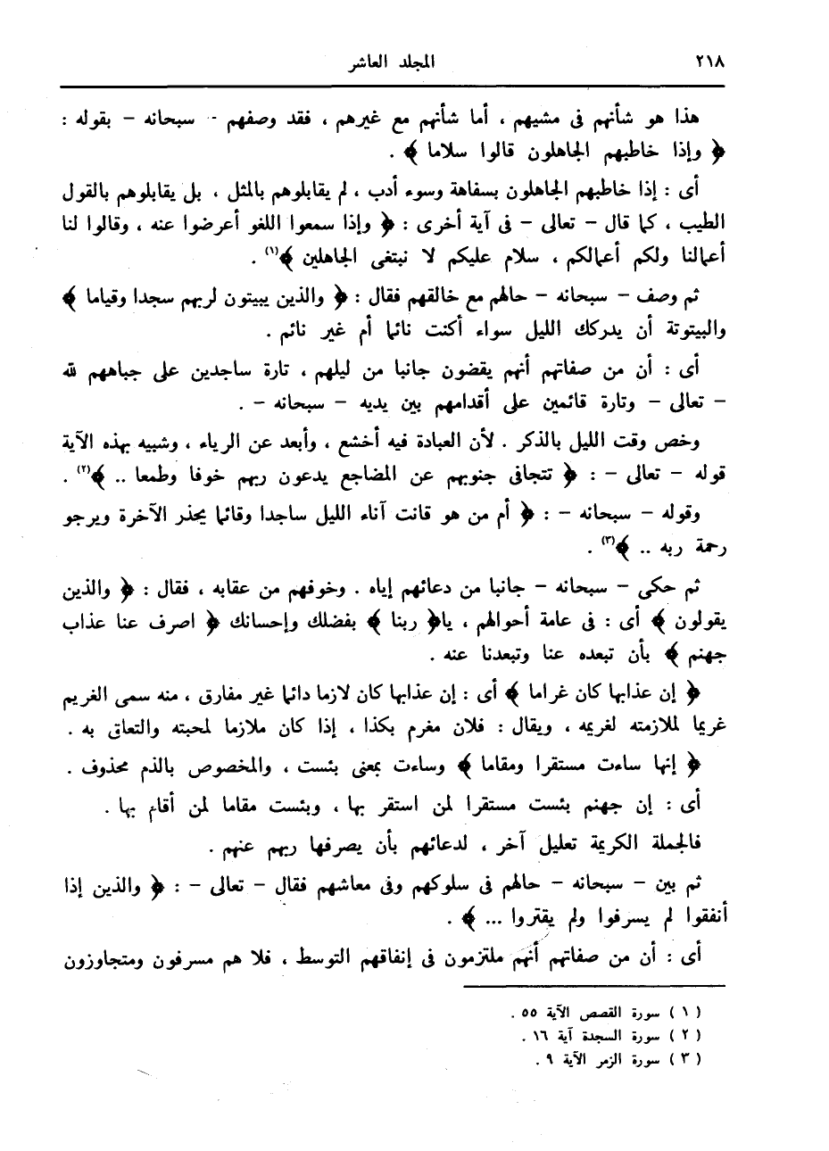 ثم بين- سبحانه- حالهم في سلوكهم وفي معاشهم فقال- تعالى-: وَالَّذِينَ إِذا أَنْفَقُوا لَمْ يُسْرِفُوا وَلَمْ يَقْتُرُوا....