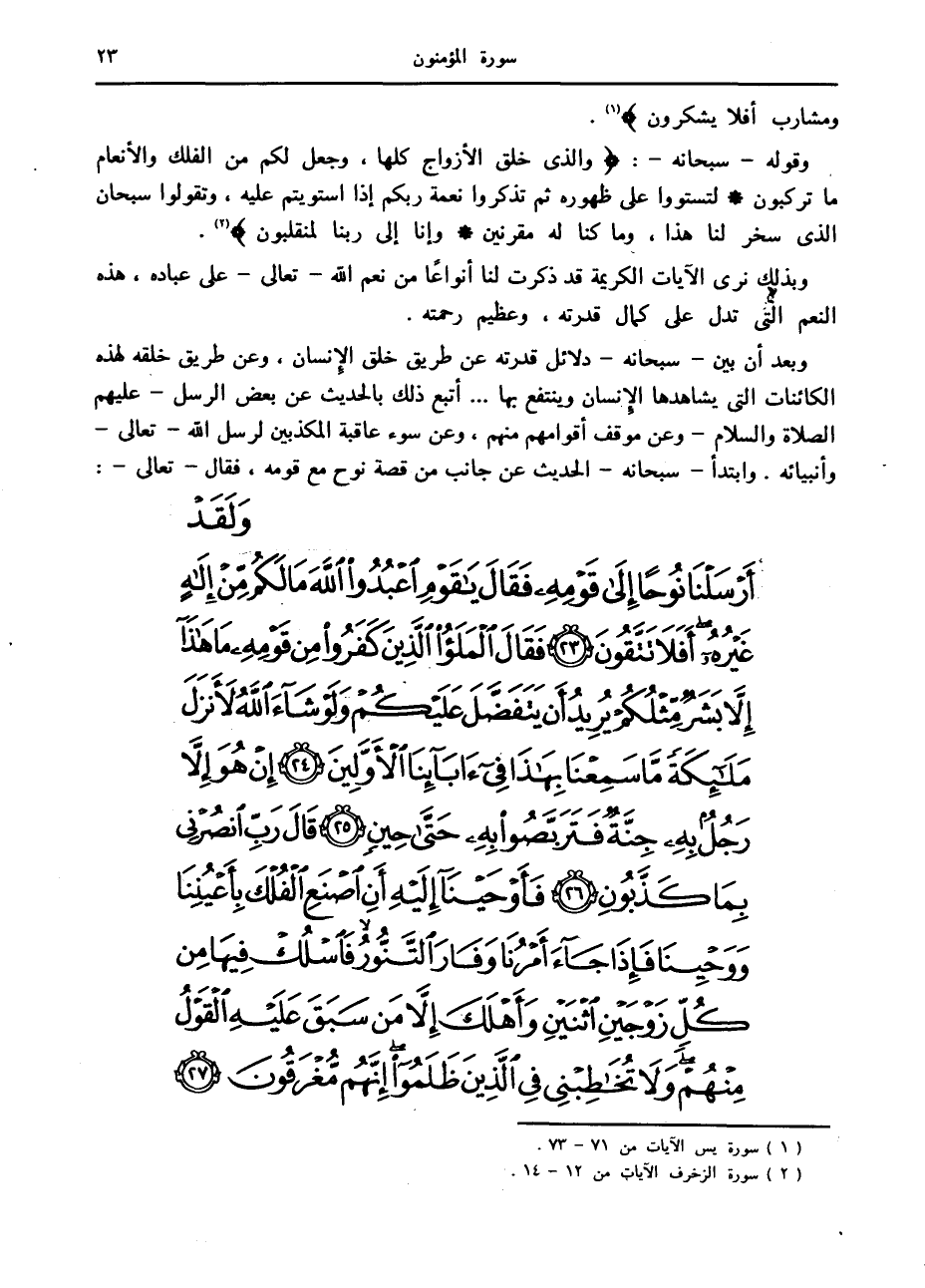 وقوله- سبحانه-: وَالَّذِي خَلَقَ الْأَزْواجَ كُلَّها، وَجَعَلَ لَكُمْ مِنَ الْفُلْكِ وَالْأَنْعامِ ما تَرْكَبُونَ لِتَسْتَوُوا عَلى ظُهُورِهِ ثُمَّ تَذْكُرُوا نِعْمَةَ رَبِّكُمْ إِذَا اسْتَوَيْتُمْ عَلَيْهِ، وَتَقُولُوا سُبْحانَ الَّذِي سَخَّرَ لَنا هذا، وَما كُنَّا لَهُ مُقْرِنِينَ وَإِنَّا إِلى رَبِّنا لَمُنْقَلِبُونَ «2» .