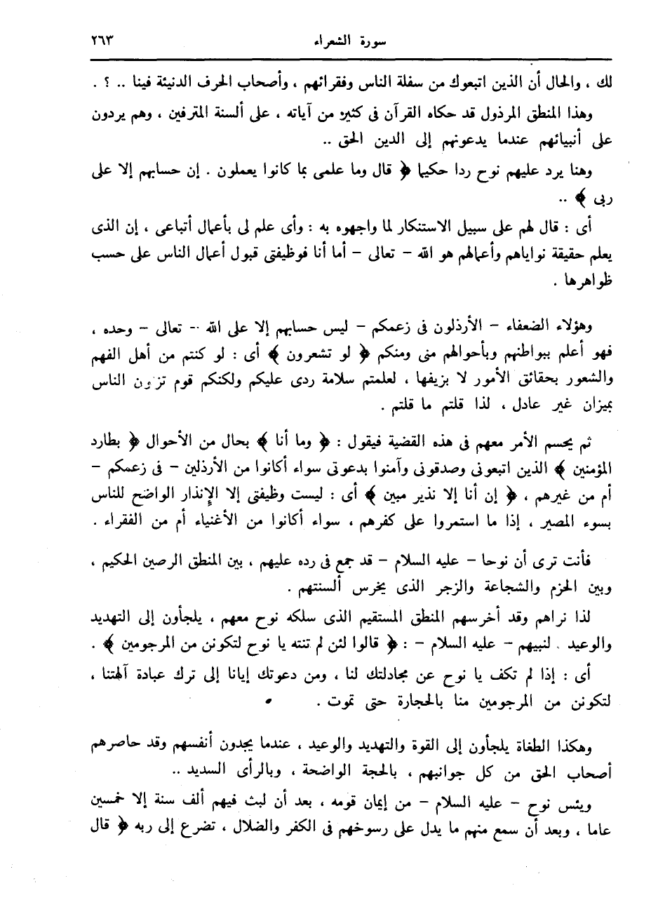 فأنت ترى أن نوحا- عليه السلام- قد جمع في رده عليهم، بين المنطق الرصين الحكيم، وبين الحزم والشجاعة والزجر الذي يخرس ألسنتهم.