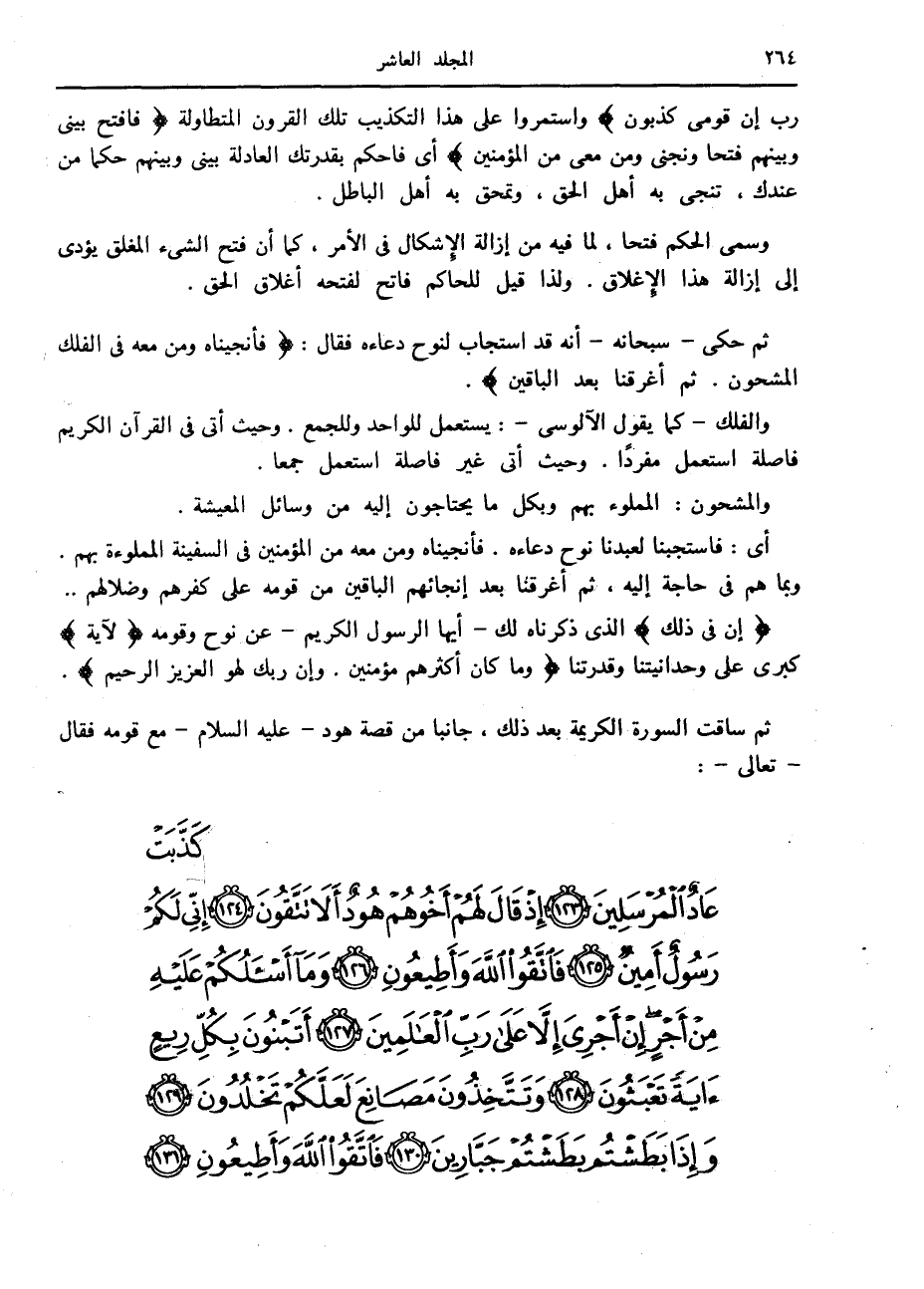 قالَ رَبِّ إِنَّ قَوْمِي كَذَّبُونِ واستمروا على هذا التكذيب تلك القرون المتطاولة فَافْتَحْ بَيْنِي وَبَيْنَهُمْ فَتْحاً وَنَجِّنِي وَمَنْ مَعِيَ مِنَ الْمُؤْمِنِينَ أى فاحكم بقدرتك العادلة بيني وبينهم حكما من عندك، تنجي به أهل الحق، وتمحق به أهل الباطل.