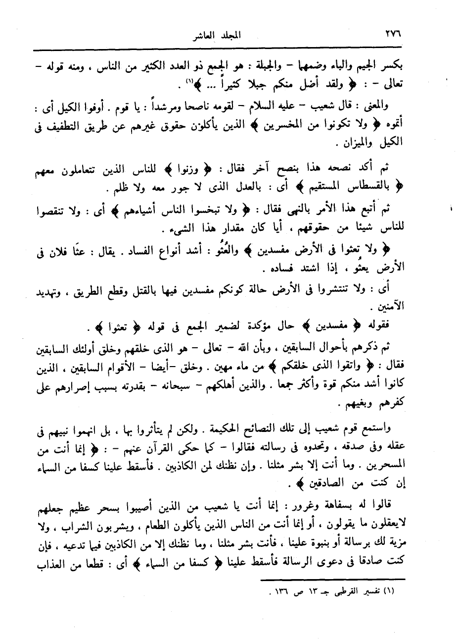 واستمع قوم شعيب إلى تلك النصائح الحكيمة. ولكن لم يتأثروا بها، بل اتهموا نبيهم في عقله وفي صدقه، وتحدوه في رسالته فقالوا- كما حكى القرآن عنهم-: إِنَّما أَنْتَ مِنَ الْمُسَحَّرِينَ. وَما أَنْتَ إِلَّا بَشَرٌ مِثْلُنا. وَإِنْ نَظُنُّكَ لَمِنَ الْكاذِبِينَ. فَأَسْقِطْ عَلَيْنا كِسَفاً مِنَ السَّماءِ إِنْ كُنْتَ مِنَ الصَّادِقِينَ.