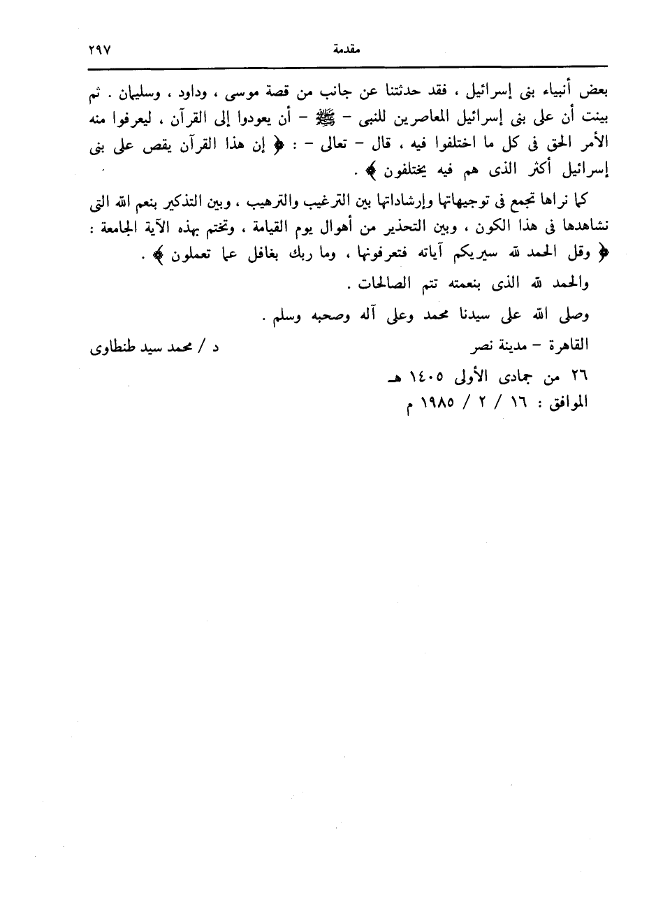 القاهرة- مدينة نصر د/ محمد سيد طنطاوى 26 من جمادى الأولى 1405 هـ الموافق: 16/ 2/ 1985 م