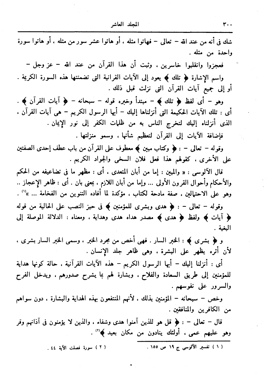 فعجزوا وانقلبوا خاسرين، وثبت أن هذا القرآن من عند الله- عز وجل- واسم الإشارة تِلْكَ يعود إلى الآيات القرآنية التي تضمنتها هذه السورة الكريمة.