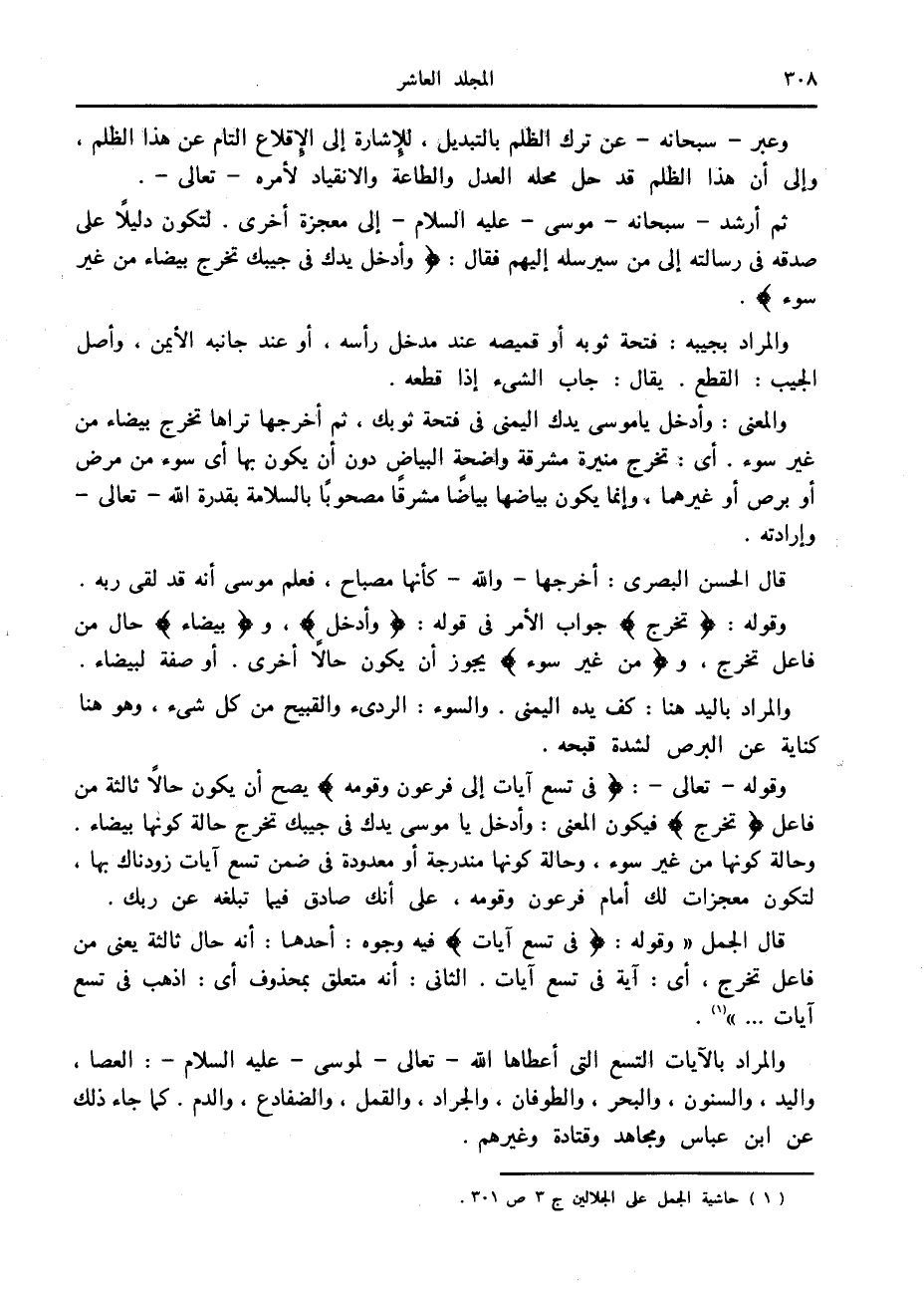 (1) حاشية الجمل على الجلالين ج 3 ص 301.