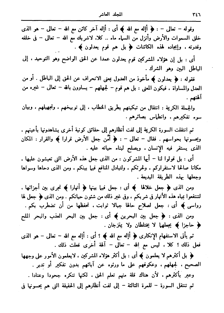 وقوله- تعالى-: أَإِلهٌ مَعَ اللَّهِ أى: أإله آخر كائن مع الله- تعالى- هو الذي خلق السموات والأرض وأنزل من السماء ماء.. كلا، لا شربك مع الله- تعالى- في خلقه وقدرته، وإيجاده لهذه الكائنات بَلْ هُمْ قَوْمٌ يَعْدِلُونَ.