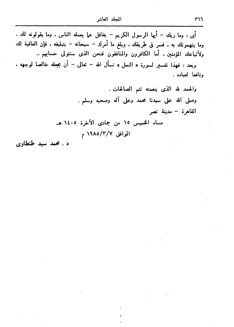 القاهرة- مدينة نصر مساء الخميس 15 من جمادى الآخرة 1405 هـ الموافق 7/ 3/ 1985 م د. محمد سيد طنطاوى
