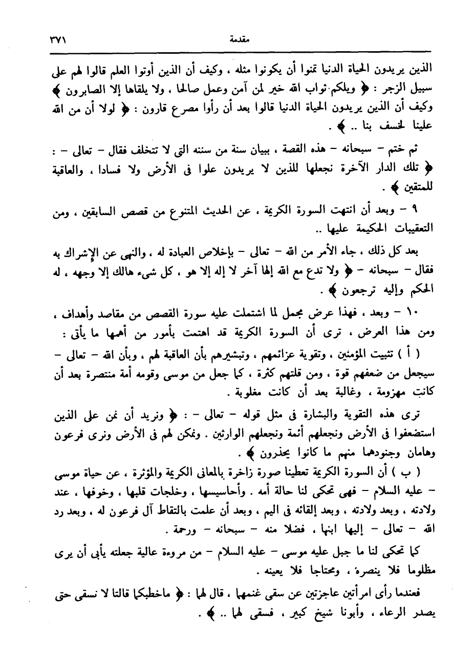 10- وبعد، فهذا عرض مجمل لما اشتملت عليه سورة القصص من مقاصد وأهداف، ومن هذا العرض، ترى أن السورة الكريمة قد اهتمت بأمور من أهمها ما يأتى: