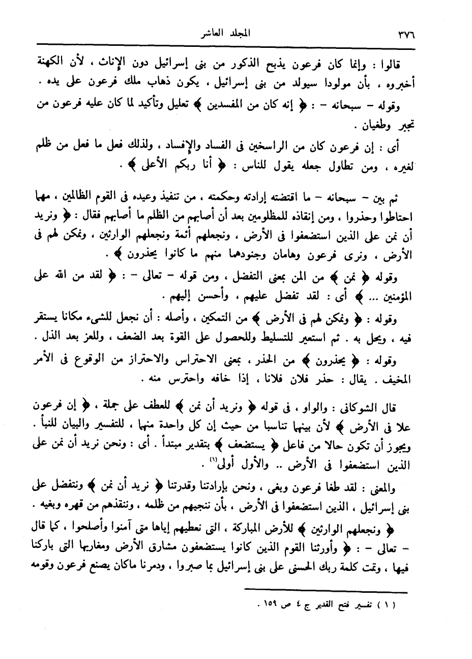 قال الشوكانى: والواو، في قوله وَنُرِيدُ أَنْ نَمُنَّ للعطف على جملة، إِنَّ فِرْعَوْنَ عَلا فِي الْأَرْضِ لأن بينهما تناسبا من حيث إن كل واحدة منهما، للتفسير والبيان للنبأ.