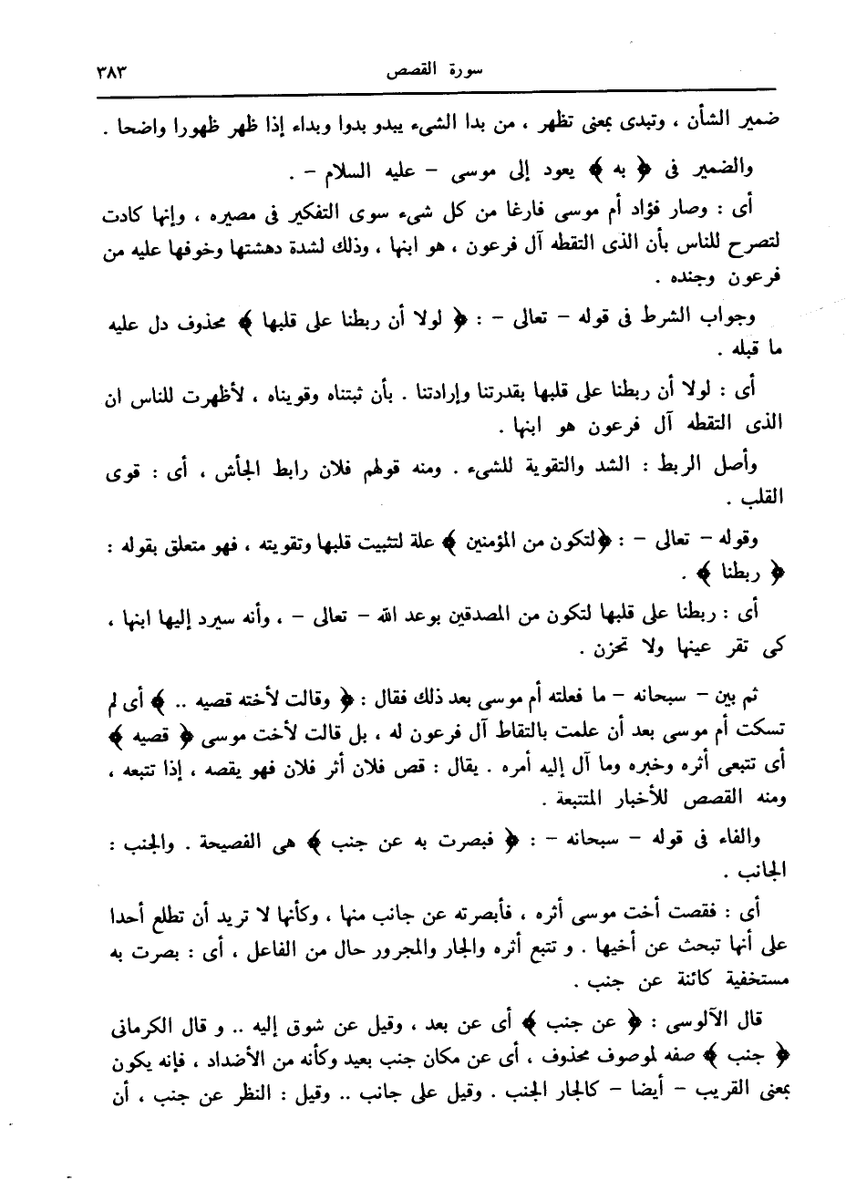 وجواب الشرط في قوله- تعالى-: لَوْلا أَنْ رَبَطْنا عَلى قَلْبِها محذوف دل عليه ما قبله.