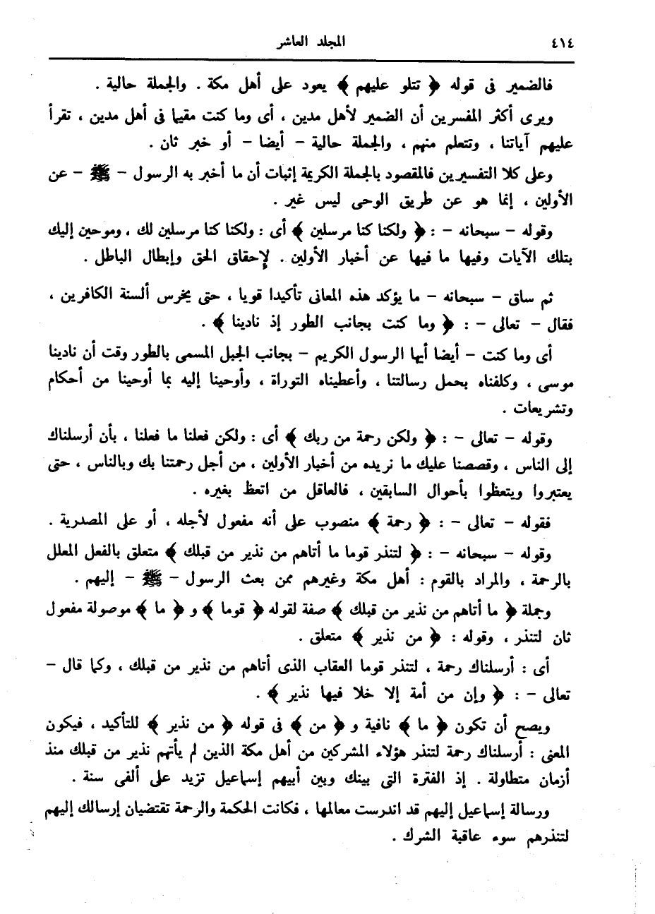 وقوله- سبحانه-: لِتُنْذِرَ قَوْماً ما أَتاهُمْ مِنْ نَذِيرٍ مِنْ قَبْلِكَ متعلق بالفعل المعلل بالرحمة، والمراد بالقوم: أهل مكة وغيرهم ممن بعث الرسول صلّى الله عليه وسلّم إليهم.