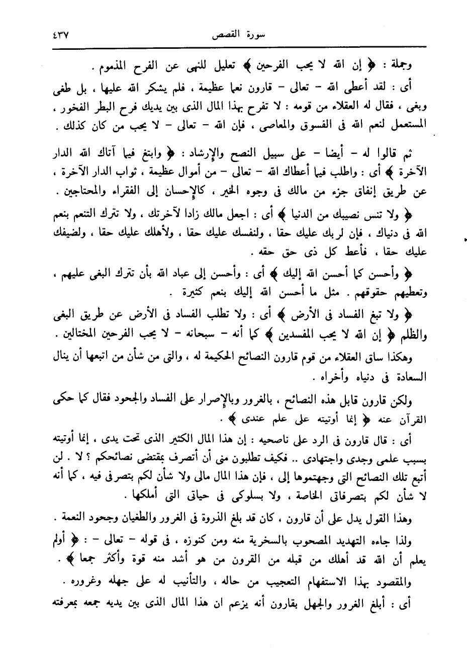 وهكذا ساق العقلاء من قوم قارون النصائح الحكيمة له، والتي من شأن من اتبعها أن ينال السعادة في دنياه وأخراه.