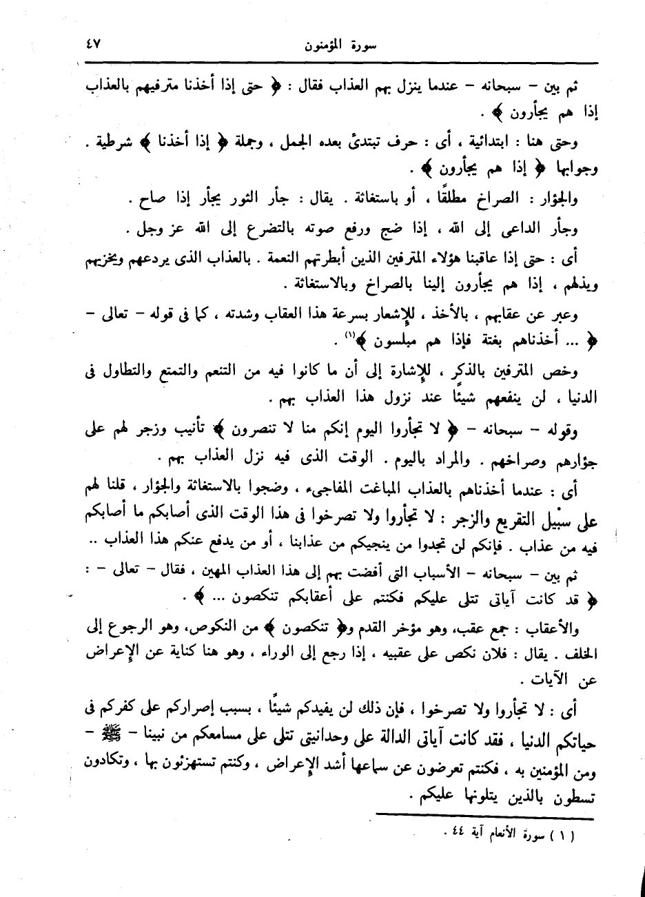 وقوله: مُسْتَكْبِرِينَ وسامِراً وتَهْجُرُونَ أحوال ثلاثة مترادفة على واو الفاعل في تَنْكِصُونَ أو متداخلة، بمعنى أن كل كلمة منها حال مما قبلها.