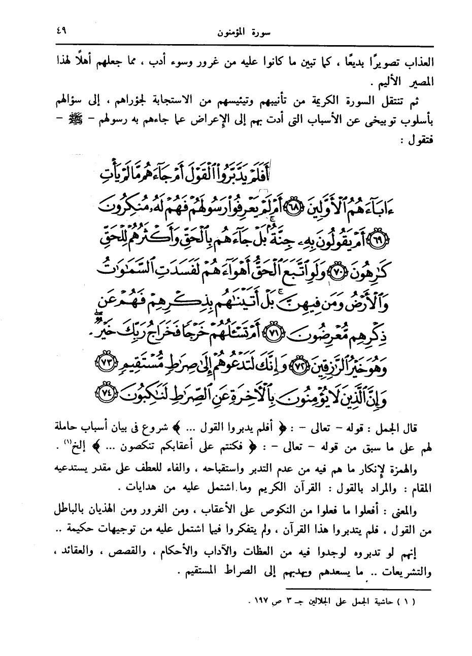 (1) حاشية الجمل على الجلالين ج 3 ص 197.