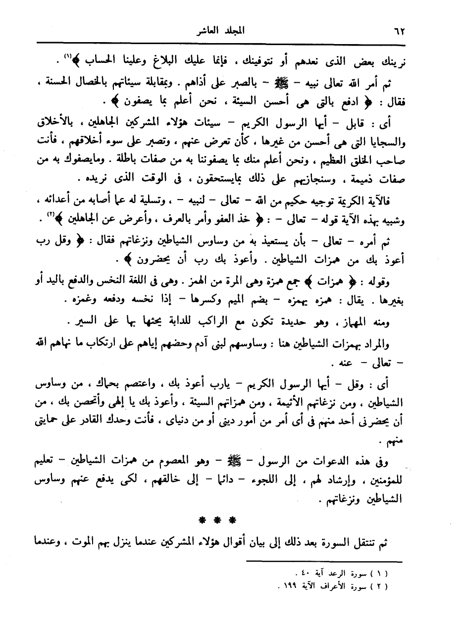 وفي هذه الدعوات من الرسول صلّى الله عليه وسلّم وهو المعصوم من همزات الشياطين- تعليم للمؤمنين، وإرشاد لهم، إلى اللجوء- دائما- إلى خالقهم، لكي يدفع عنهم وساوس الشياطين ونزغاتهم.