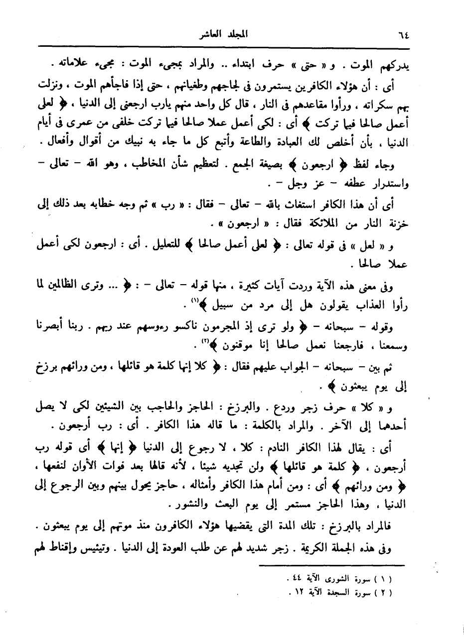 ثم بين- سبحانه- الجواب عليهم فقال: كَلَّا إِنَّها كَلِمَةٌ هُوَ قائِلُها، وَمِنْ وَرائِهِمْ بَرْزَخٌ إِلى يَوْمِ يُبْعَثُونَ.